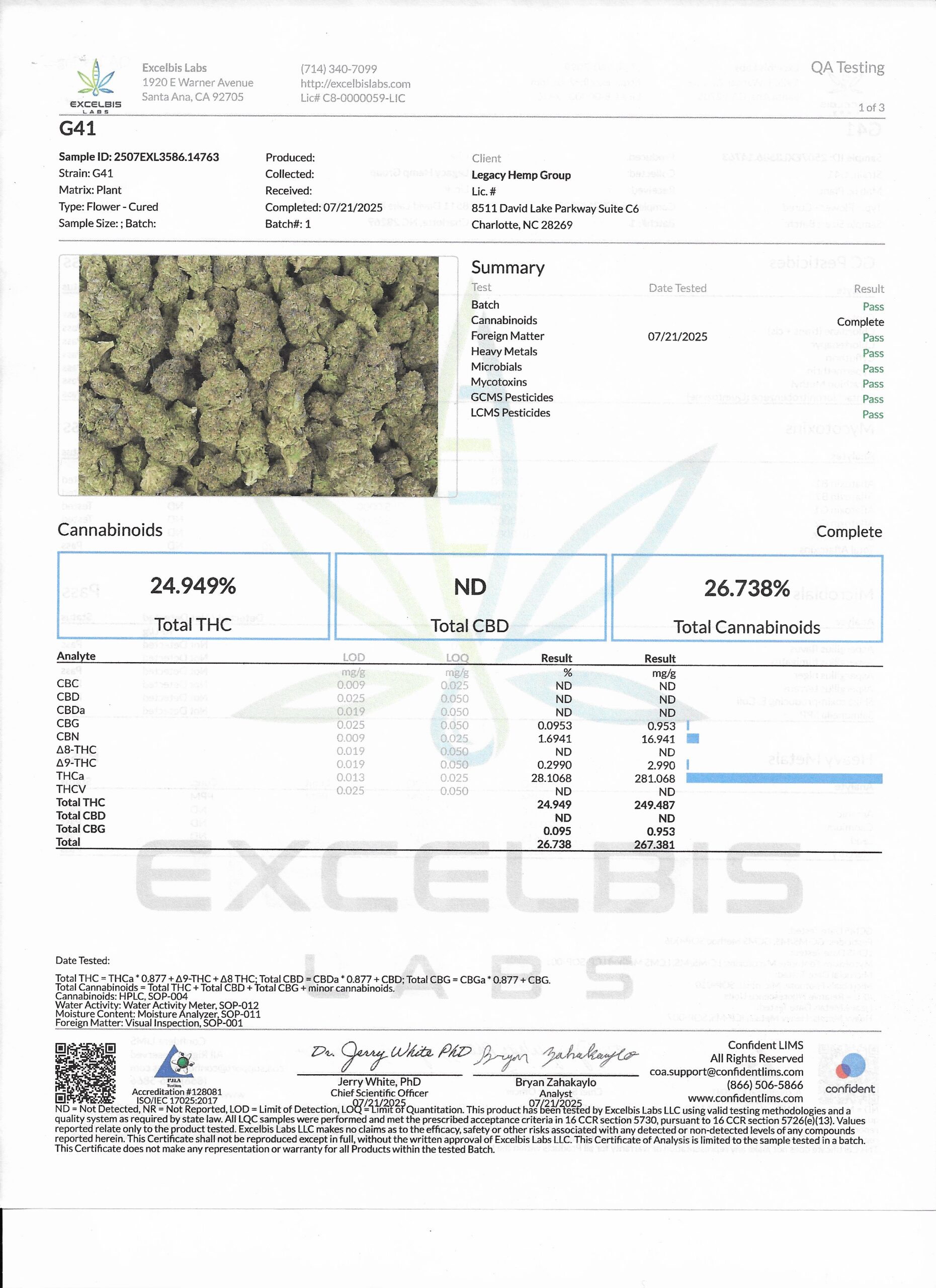 CannaCove ensures all G41 THC-A Flower is third-party lab tested for: