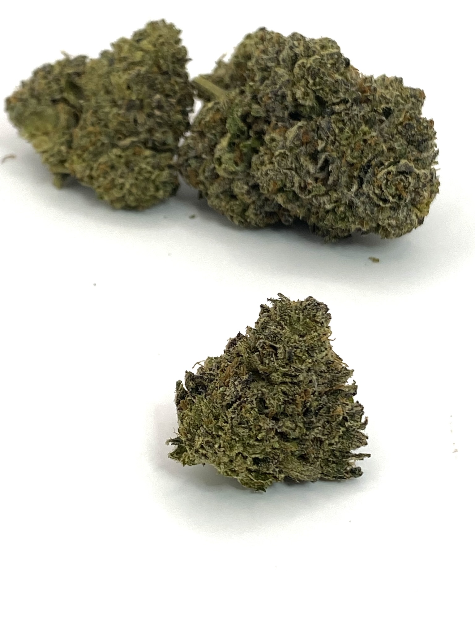• Appearance: Smaller nugs, light-to-medium green with orange hairs, minimal frost