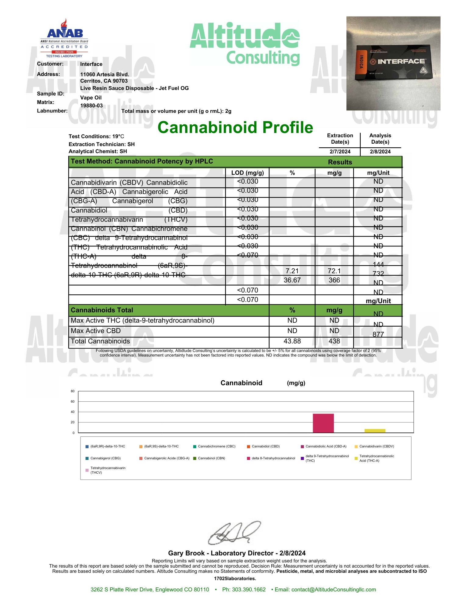 Q1: How strong is the Wholesale Interface Jet Fuel OG Vapes THC-A Live Resin 2 Gram?