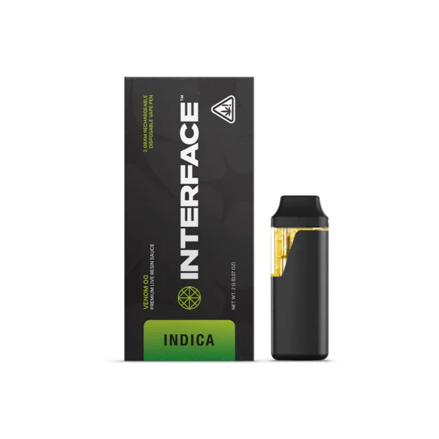 Shop Interface Venom OG THC-A Live Resin 2 Gram Disposable Vape at CannaCove. Premium hemp-derived extract, rechargeable, Farm Bill compliant.